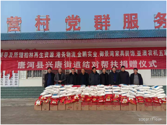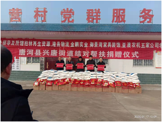捐贈儀式上產(chǎn)業(yè)集聚區(qū)黨委書記劉清文、主任李國營代表興唐街道黨委、政府向五家企業(yè)的義舉表示感謝。他指出,以亞澳農(nóng)機(jī)為首的這五家公司,在完成自身企業(yè)負(fù)責(zé)包片貧困村脫貧的基礎(chǔ)上,還能再拿出現(xiàn)金3000元捐資扶貧,將自己的社會責(zé)任意識,由助力脫貧攻堅(jiān),走向現(xiàn)在回饋社會。代表著我縣企業(yè)經(jīng)營由起步走向成熟。他希望廣大困難群眾正確面對暫時的困難,樹立戰(zhàn)勝貧困、走出困境的信心和勇氣,發(fā)揚(yáng)自力更生、艱苦奮斗的精神,不等不靠,在黨委、政府和社會各界的支持和幫助下,以自身的努力和實(shí)干來化解生產(chǎn)、生活中的各種困難,為構(gòu)建美麗和諧的新唐河作出自己的貢獻(xiàn)。