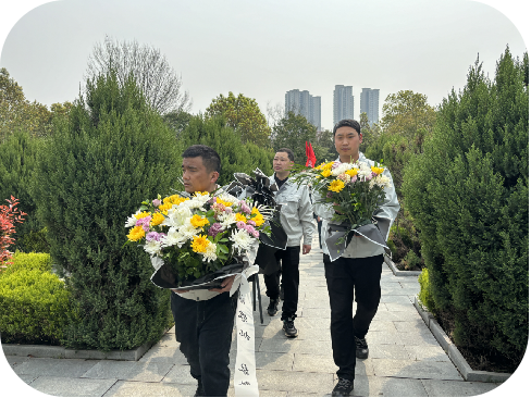 活動現場、各位員工代表手持鮮花列隊肅立在莊嚴的烈士紀念碑前,依次將鮮花擺在紀念碑石階上,駐足凝視、以寄哀思,隨后全體鞠躬、默哀,向革命先烈們致以崇高的敬意、表達無限的緬懷之情。